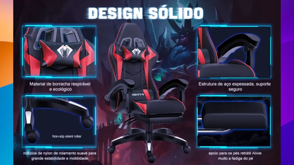 Benefícios Principais da Cadeira Ergonômica Gamer Python com Apoio Para os Pés