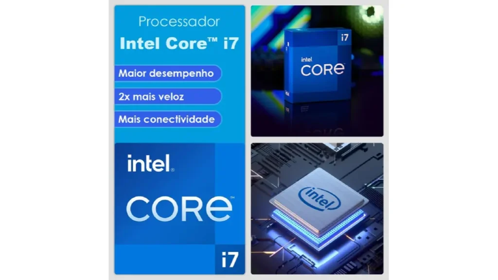 O processador Intel Core i7, oferece poder de processamento adequado para multitarefa e aplicações cotidianas.