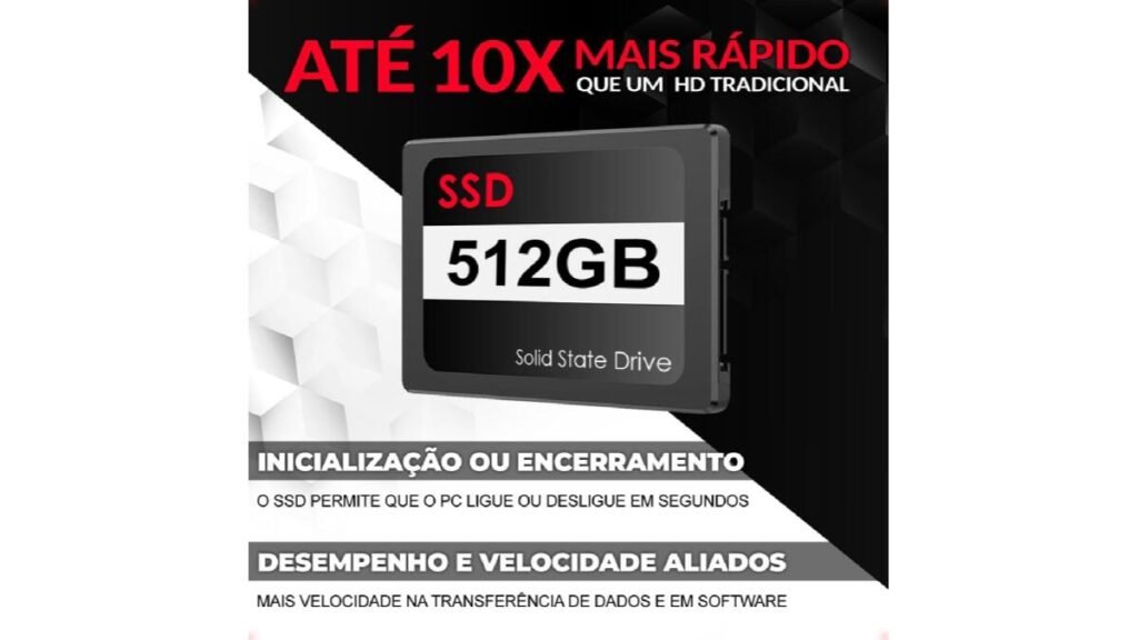 - SSD 512GB SATA III, Velocidade garantida para máxima performance!